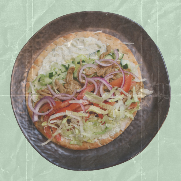 Warm Durum gevuld met huisgemarineerde Planted Döner, romaine sla, rode kool stripes, verse rode ui and huisgemaakte aioli